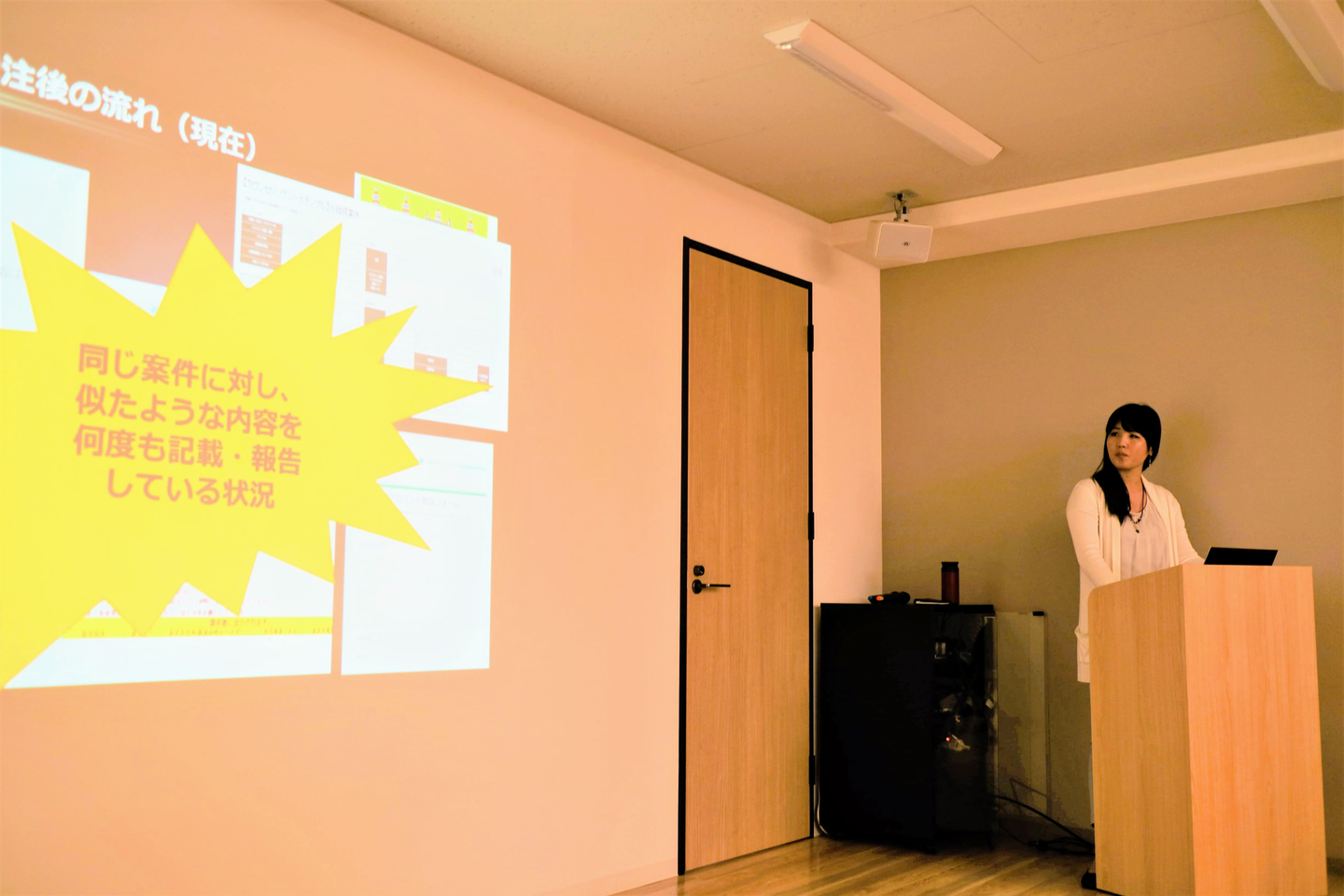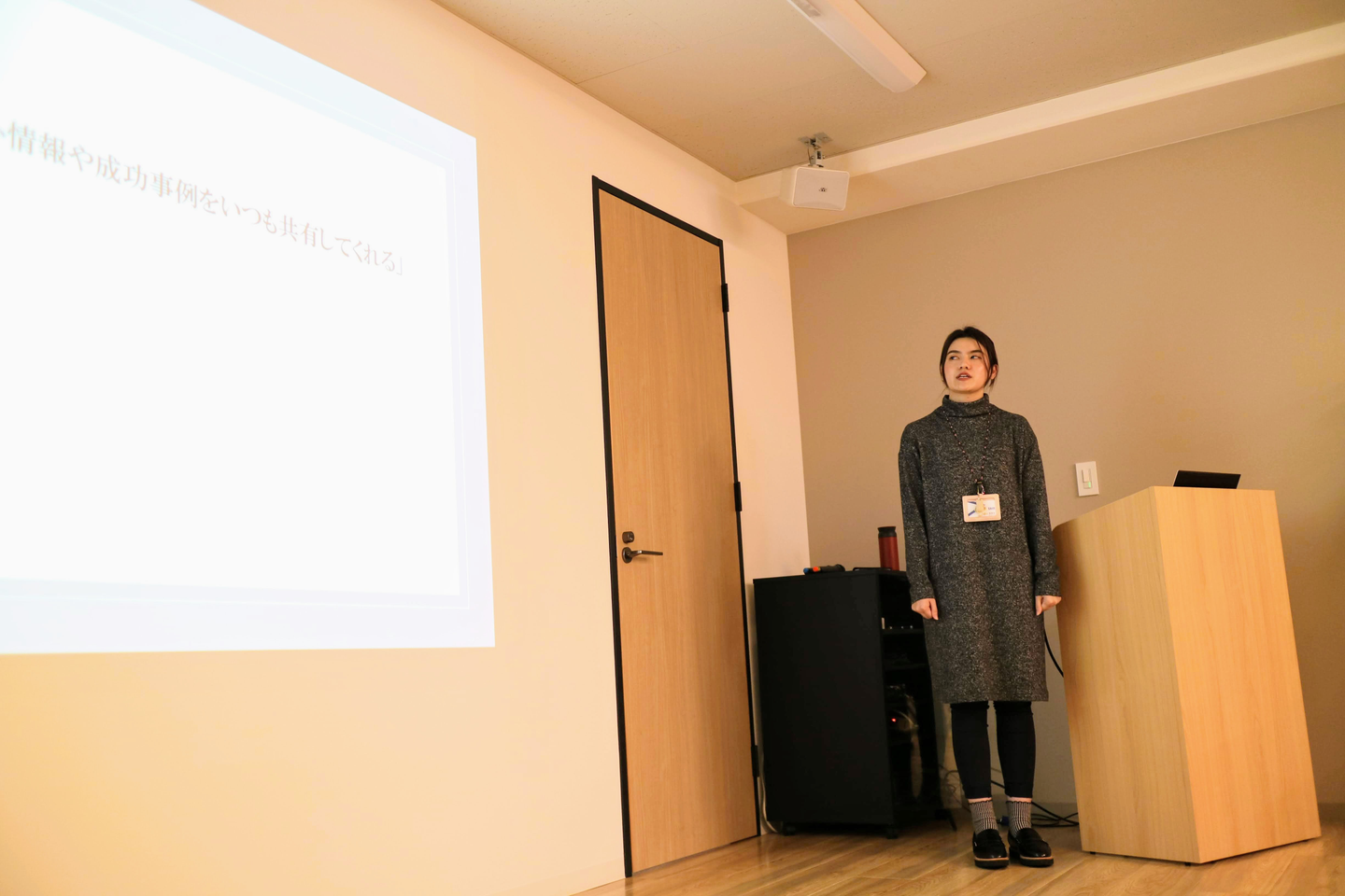 2番目の発表は新卒1年目の對馬さん(筆者)