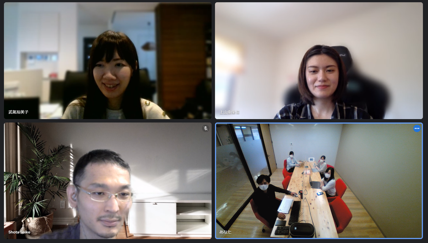 新入社員は同期も含めて社内交流がまだ少なく、特にリモートでは雑談が一気に減るので、早めにオンライン会議に参加したり、オンラインランチ会を設けるなどしました。