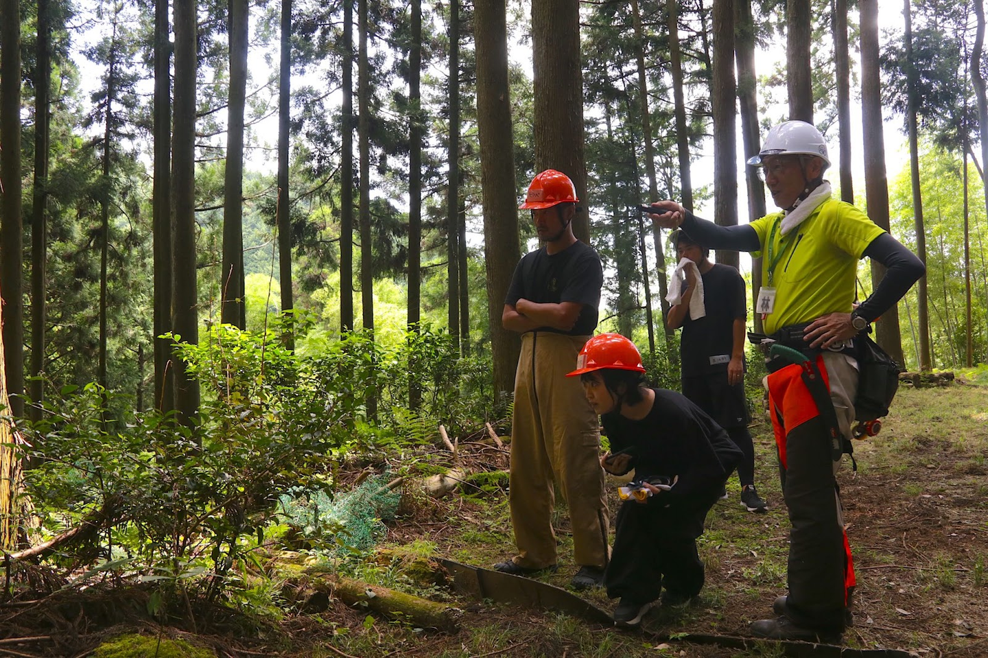 商業施設の内装プロジェクトにて間伐体験を実施した際の写真