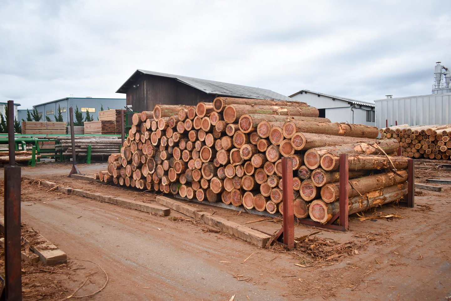 この敷地外にも、大量の丸太を在庫しているようです。