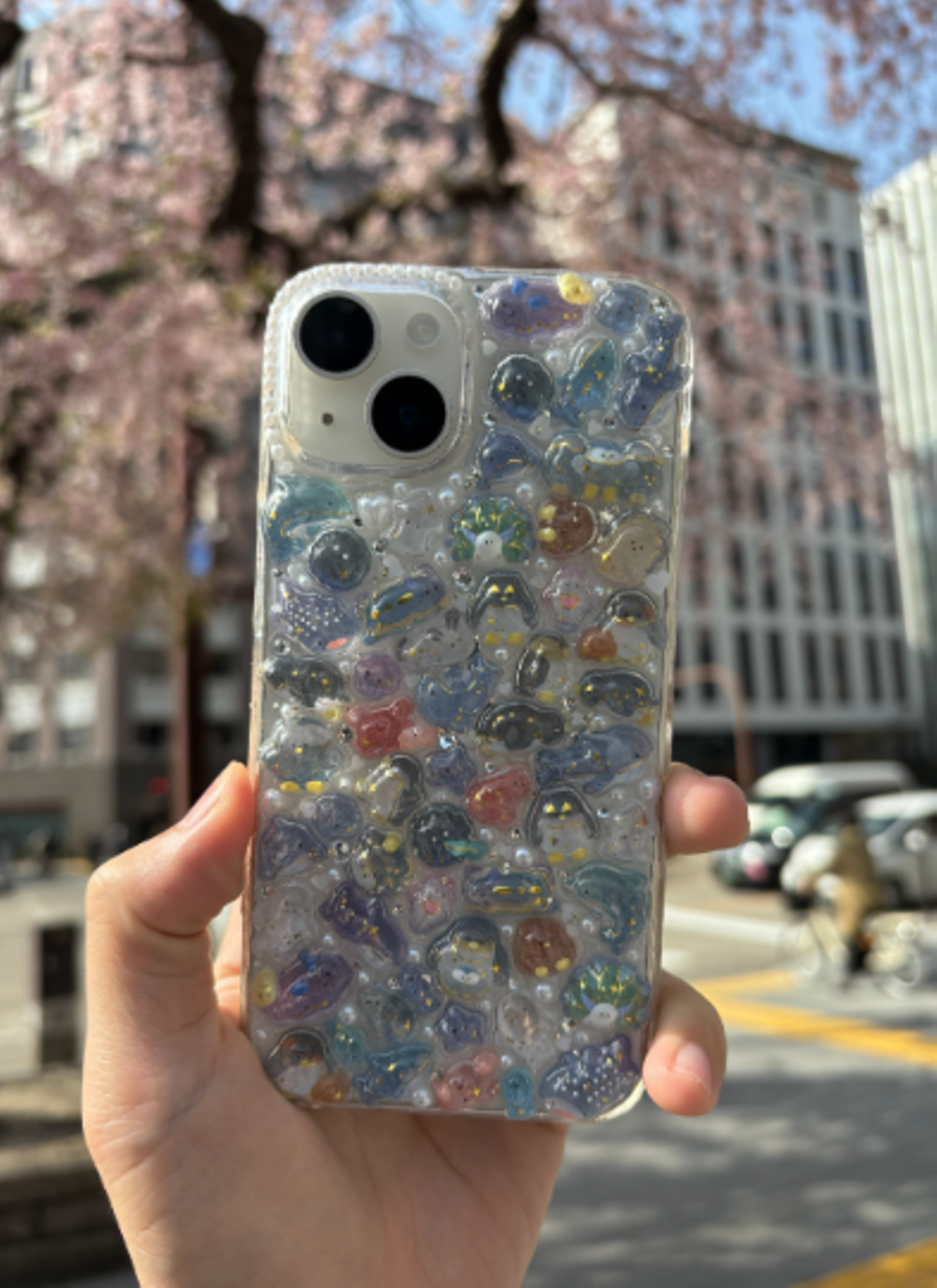 こちらは、ハヤシさんが使用していた、デコシールで作ったスマホケースです。