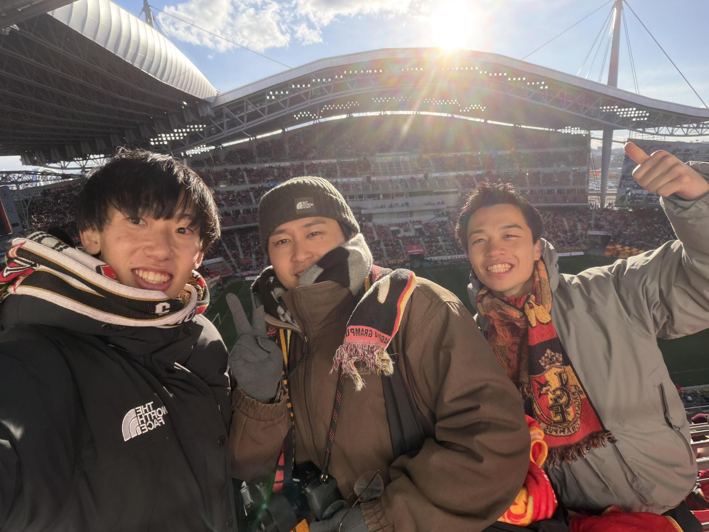 休日に一緒に遊びに行くこともあるそうで、仲のよい先輩社員と趣味のサッカー観戦にも行かれたのだとか。