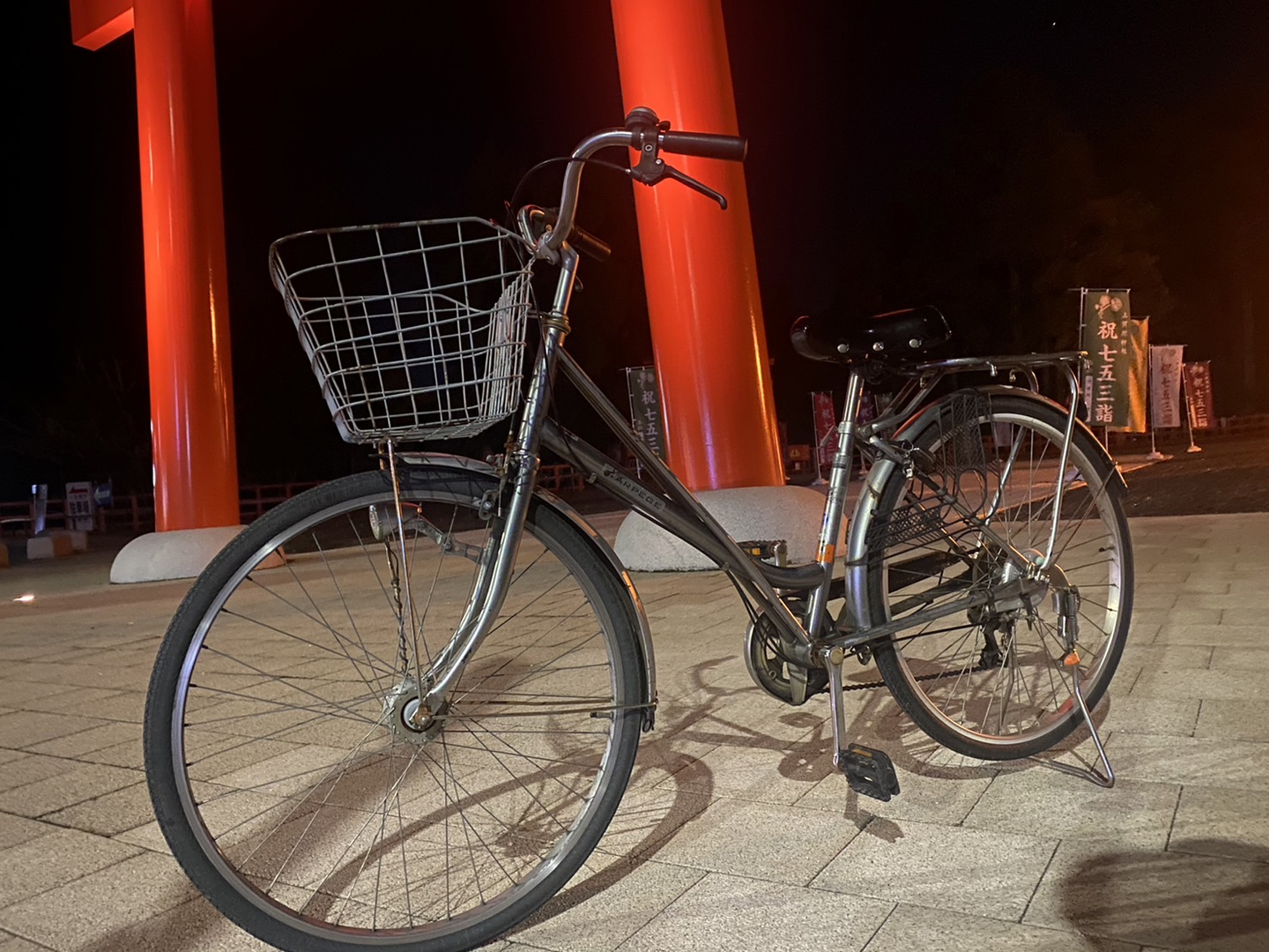 「中学のとき、おじいちゃんに買って貰ったもの。もう生産中止して、他のママチャリとボディが少しだけ違うのが気に入っている。京都から和歌山まで、大体150kmぐらい走ったこともある」