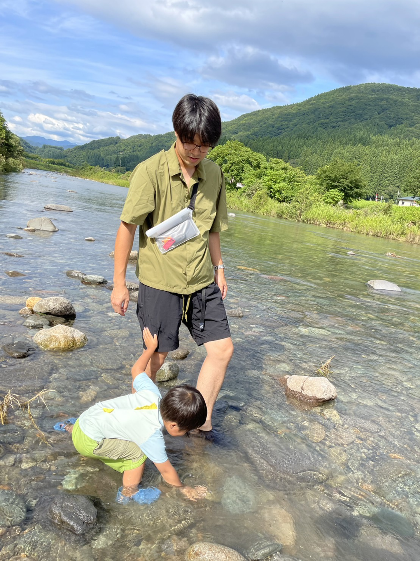 浅瀬では安心して子供と遊ぶことができます。※川遊びの際には子供から目を離さないようにしましょう