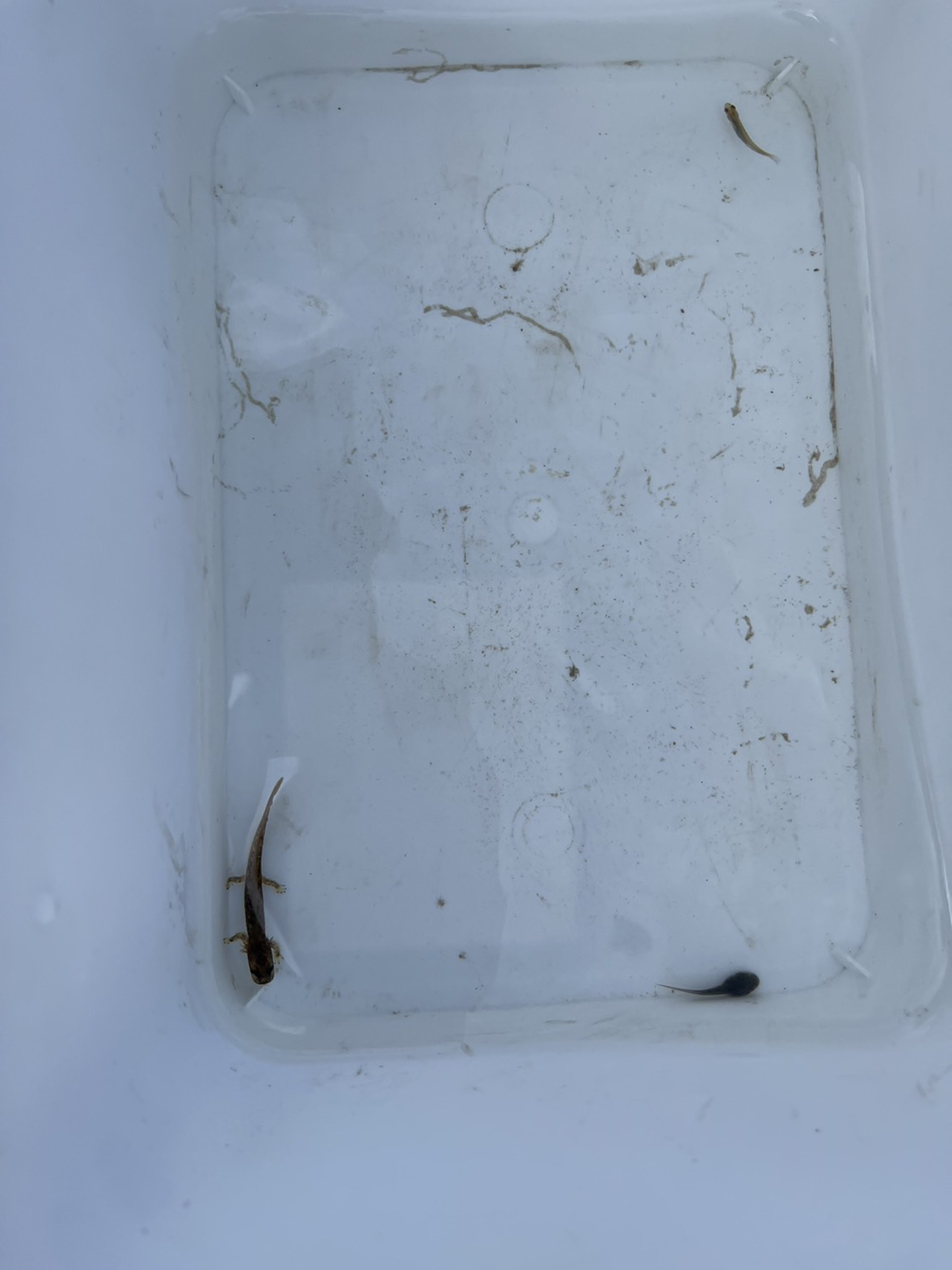 画像はメダカ、オタマジャクシ、キタオウシュウサンショウウオの幼体です。