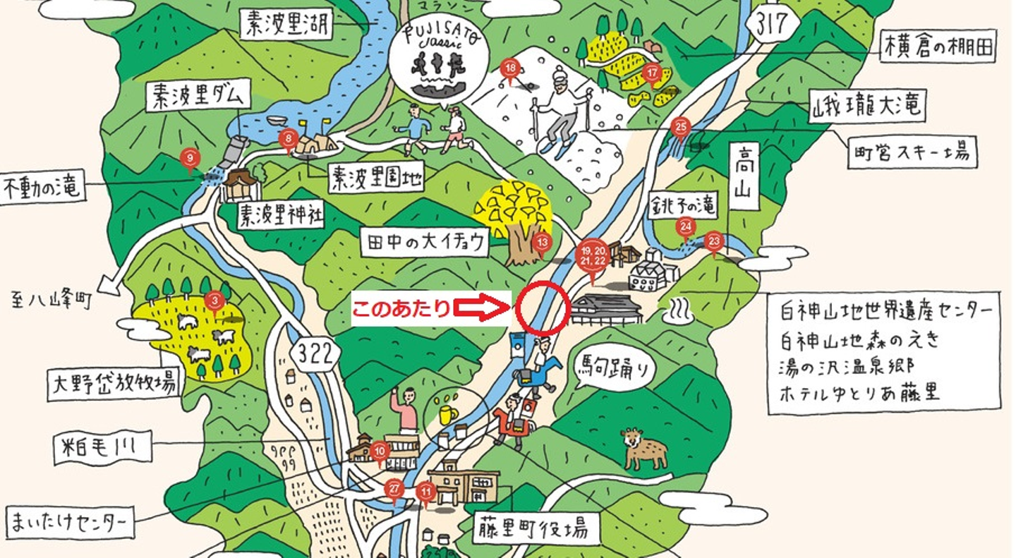 町内MAPを見てわかるとおり、藤里町の水は白神山地に源流があり、町と水源の間に何もありません。