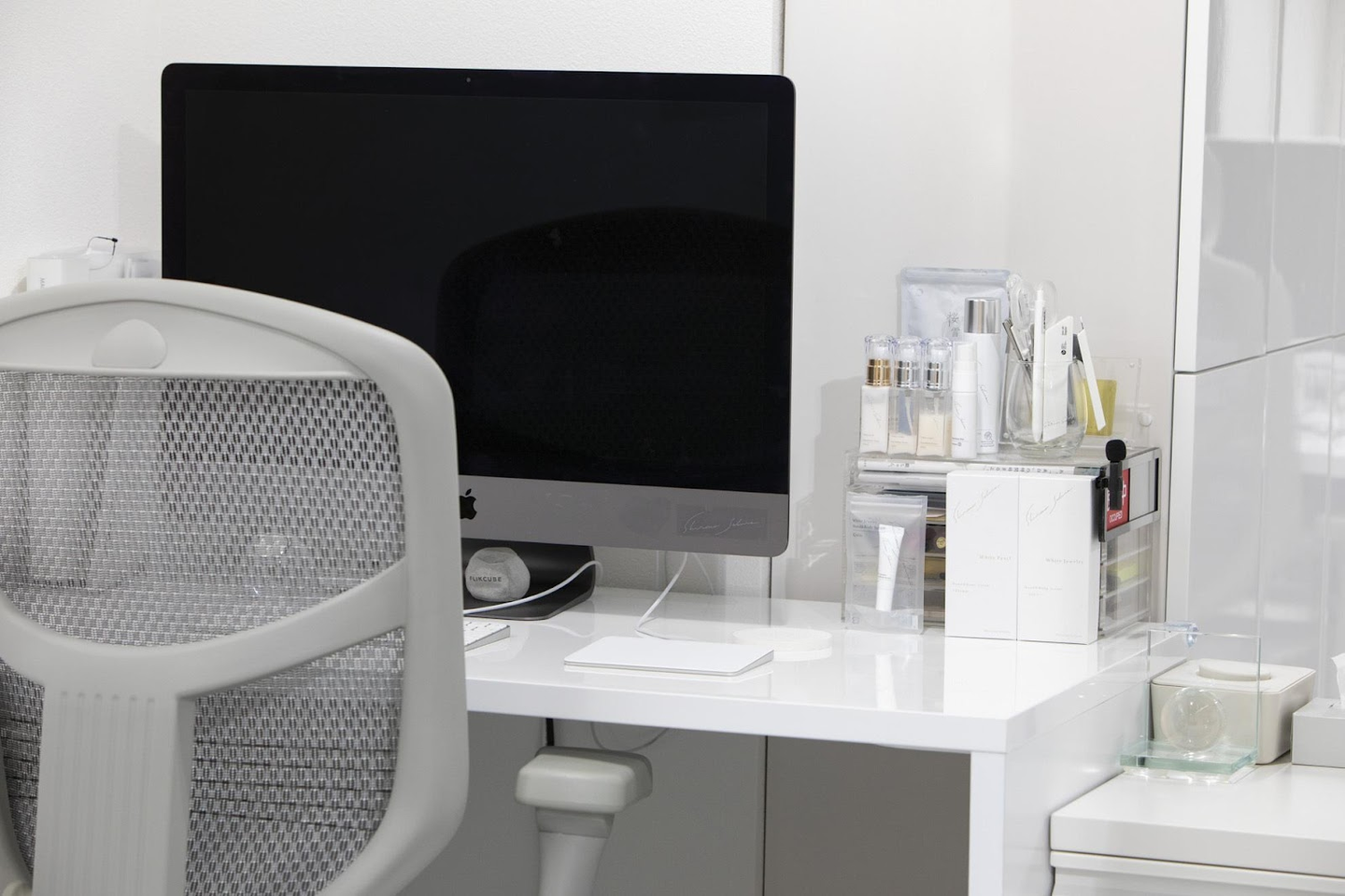 また、一人ひとりのデスクにShiro no sakura.の化粧品が配備されています。