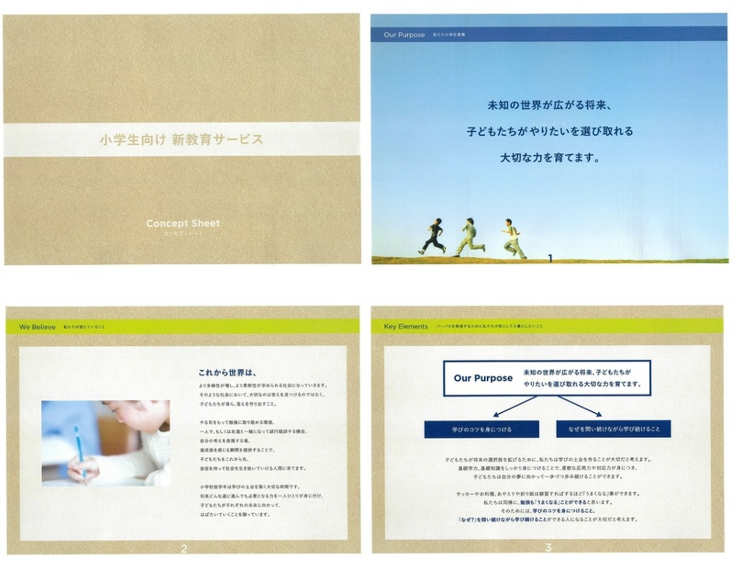 半年近い期間をかけ、それらを実施し、私たちのこの事業における目的=「子どもたちにどのように育ってほしいのか」という想いも含めた、商品設計の骨格を決めて1冊の『コンセプトブック』にまとめました。