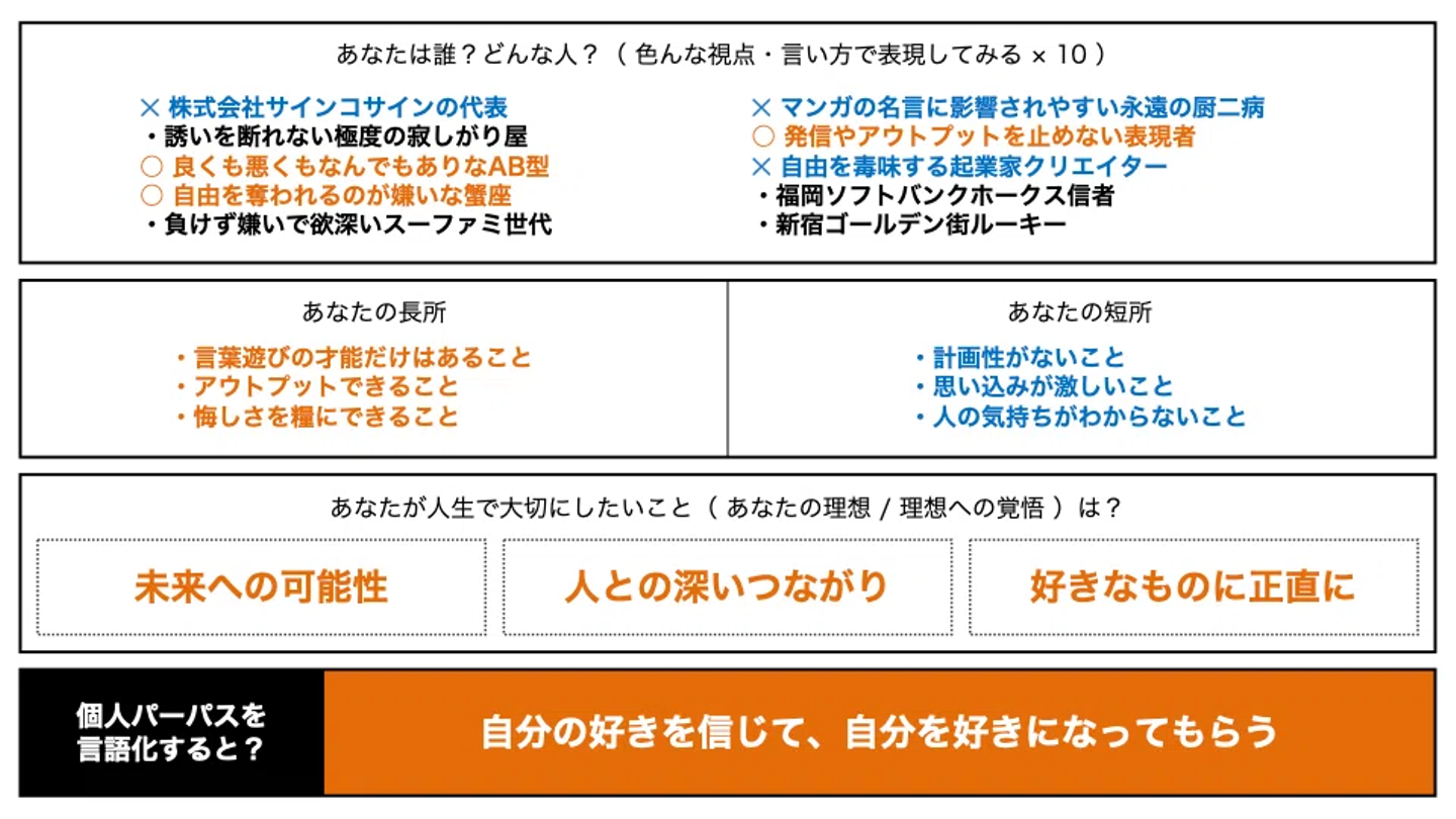 それでは早速、あなたの自分らしさ、パーパスを言葉にしてみましょう!