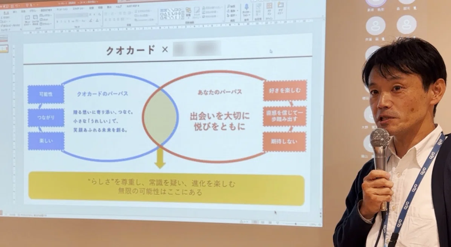 本プロジェクトの目的は、クオカードではたらくひとりひとりが、自分自身のパーパスを発見することで、会社のパーパスへの想いを深めること。そして、その重なりやつながりから、自分が会社で実現したいことを共有することです。