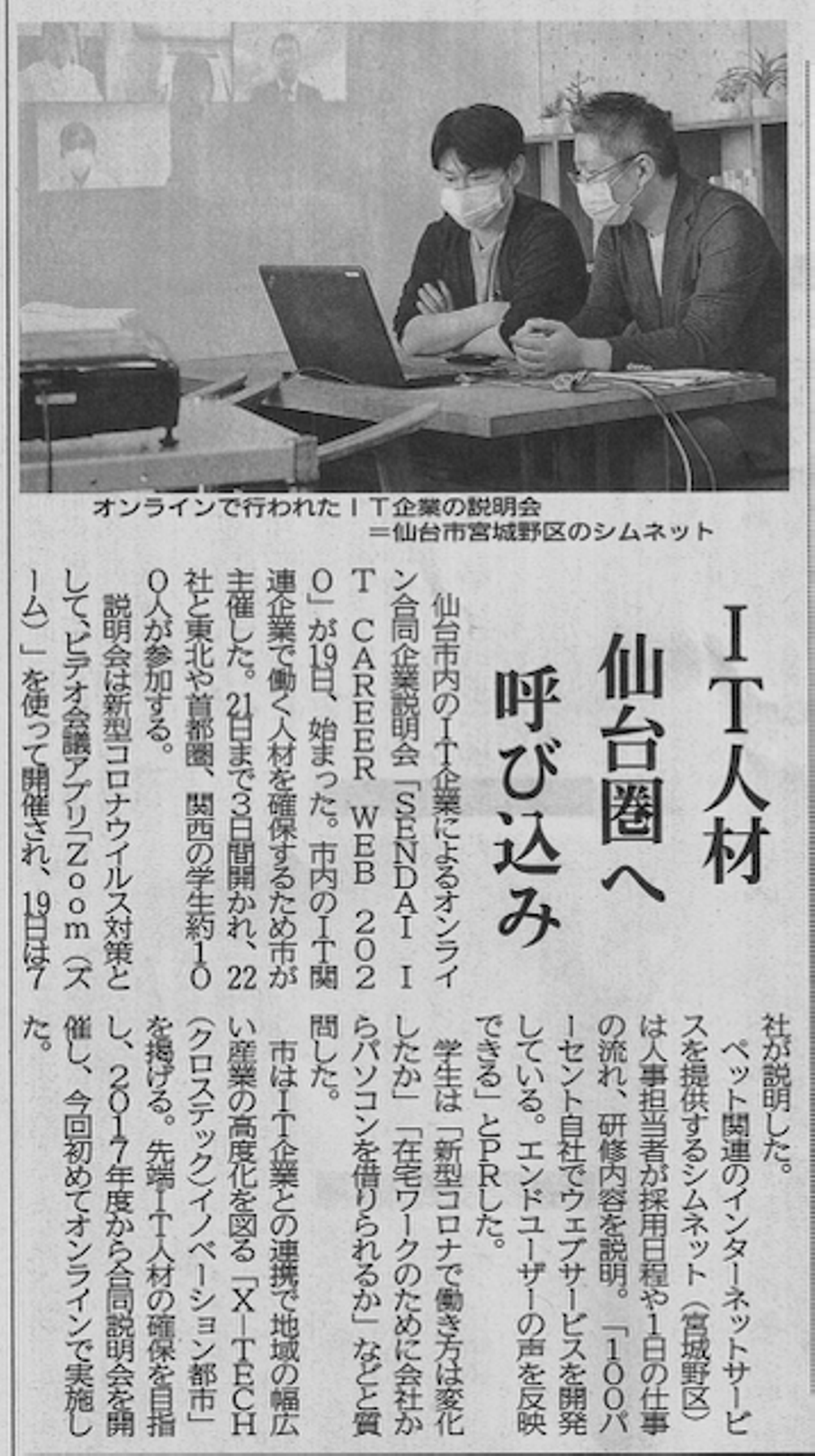 以上、東日本放送様・河北新報様より、コロナ禍のなかでも積極的に人材確保を目指すシムネットの取り組みを紹介していただきました。