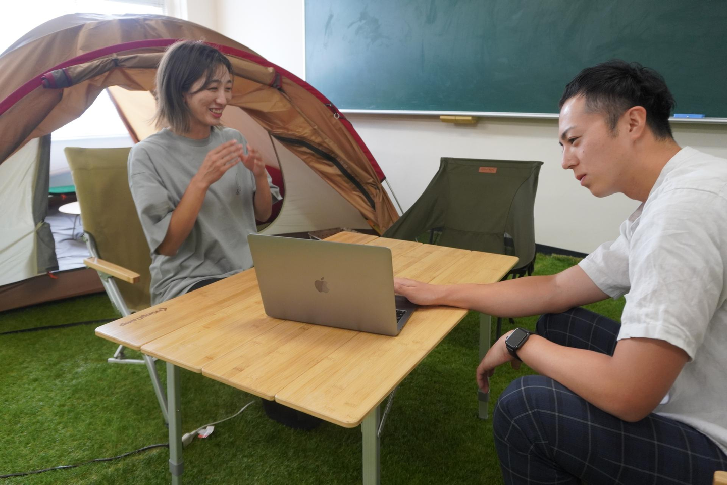 最初はこのオフィスにもある人工芝を受け取るところから始まりました。(笑)そのあとは会社の登記や自分自身や静香さんの雇用の手続きなどをしていましたが、全くやったことがありませんでした。(笑)社長は「調べてやってくれる?」という投げかけかたをしてくれるので。社長から全て教えてもらうのではく、自ら調べてできることを探すというのが私たちの仕事のスタイルでもあります。