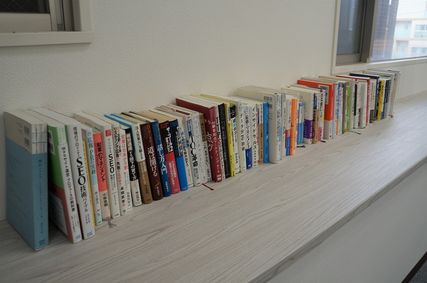 社長や役員、社員のおすすめする本が置いてある書庫です。Web業界についての知識が深まる本ばかりです。休憩時に読むのはもちろん、貸出可能なので、持ち帰って読んでもOKです。他に読みたい本があれば、申請して送ってもらうこともできますよ。本好きにはたまらない制度ですね。