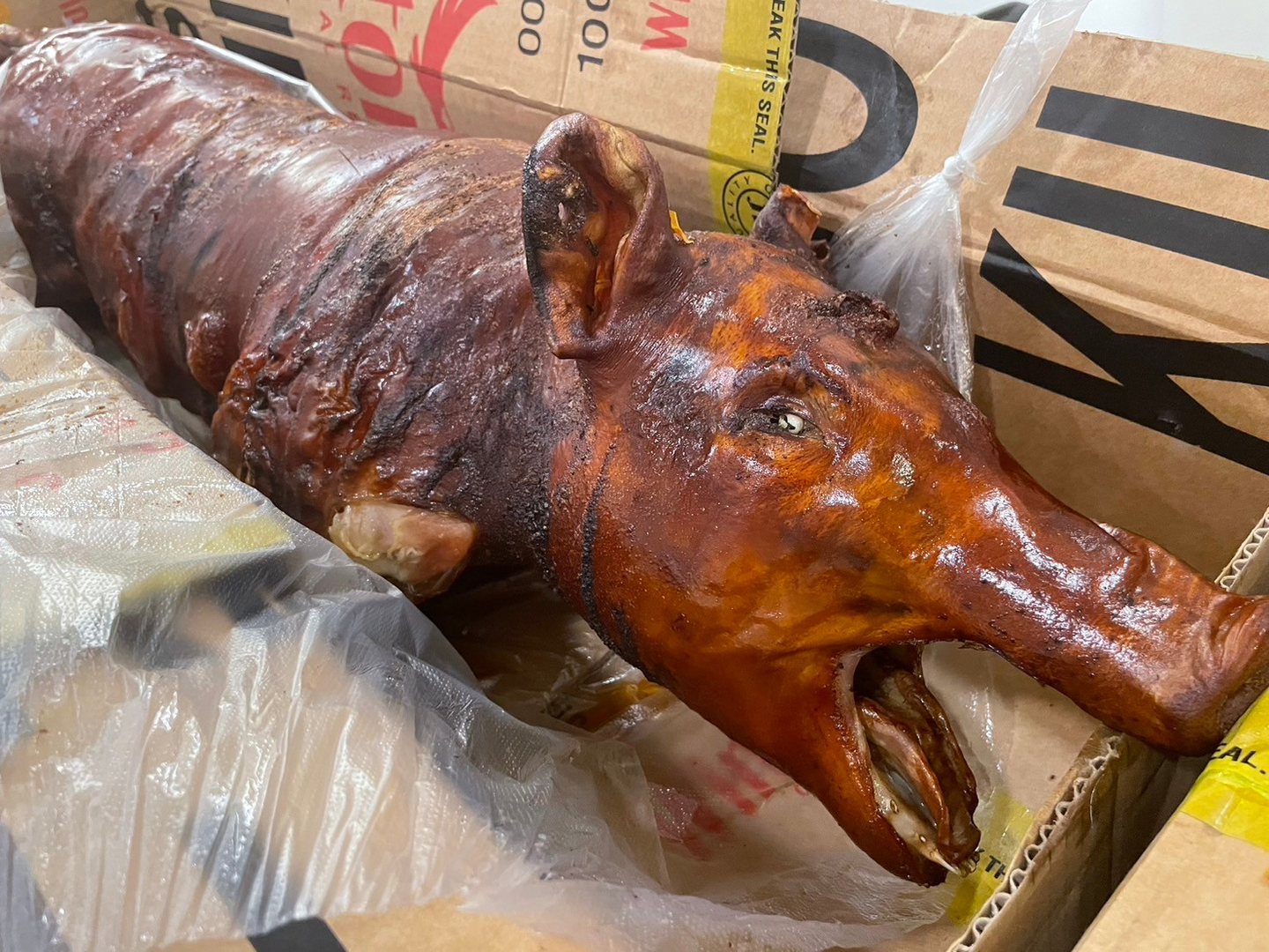 フィリピン名物のレチョン(豚の丸焼き)をいただきました!