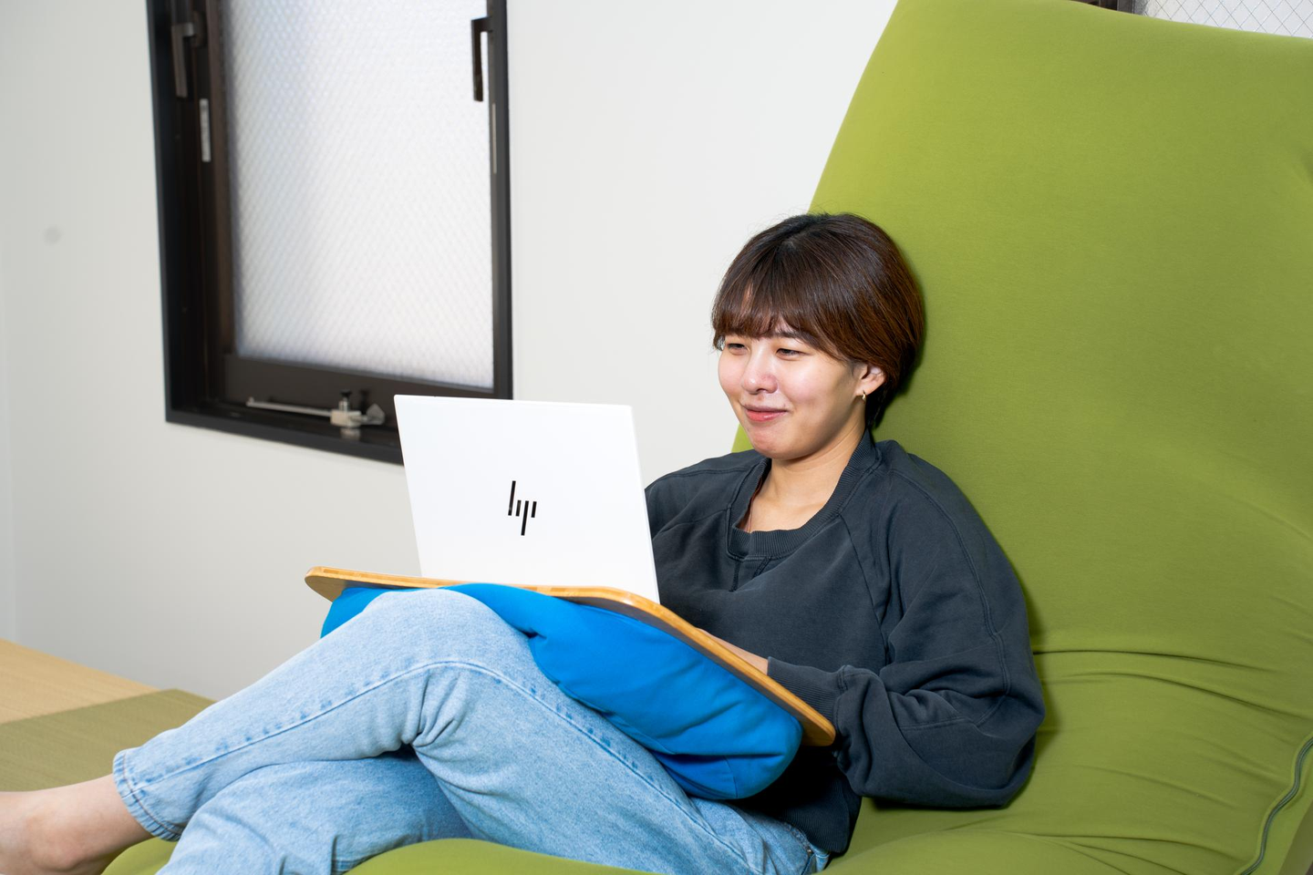 大きなヨギボーも完備。ここで休憩したり、リラックスしながら仕事をすることも可能です。