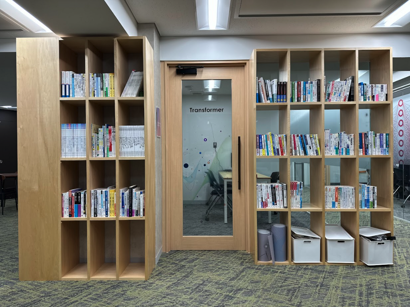 本棚には、多くの書籍を揃えており、特にAIやGX関連の最新書籍を常に取り揃えています。