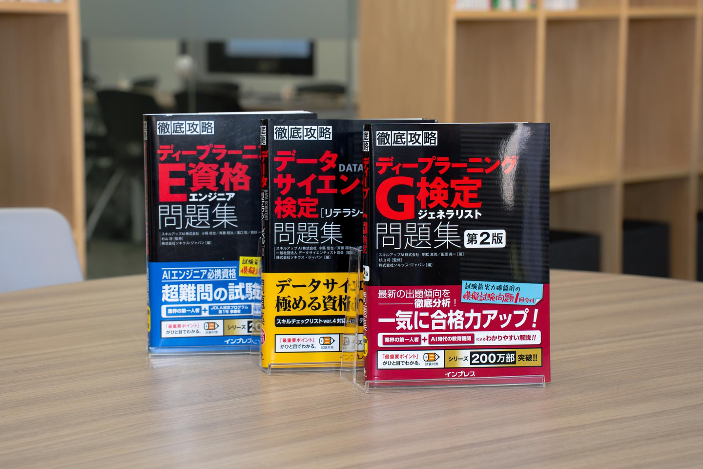 「G検定ジェネラリスト問題集」「データサイエンティスト検定問題集」「E資格エンジニア問題集」は、当社が出版している書籍です。従業員は資格取得のための勉強に活用しています。