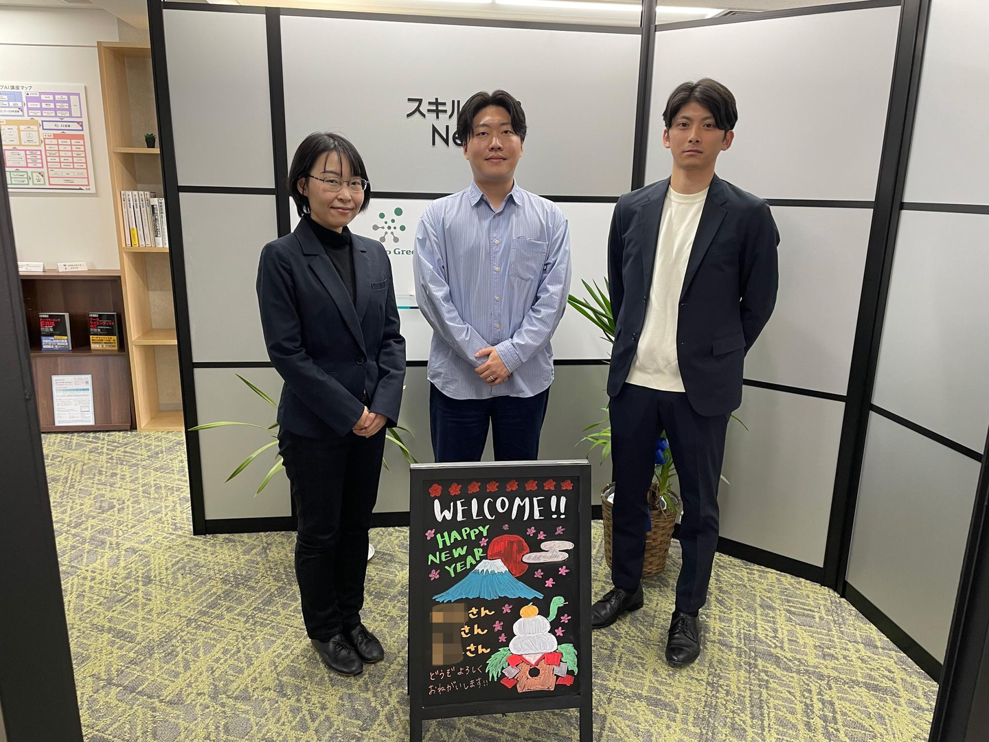 毎月の入社に合わせて、ウェルカムボードを玄関に設置。