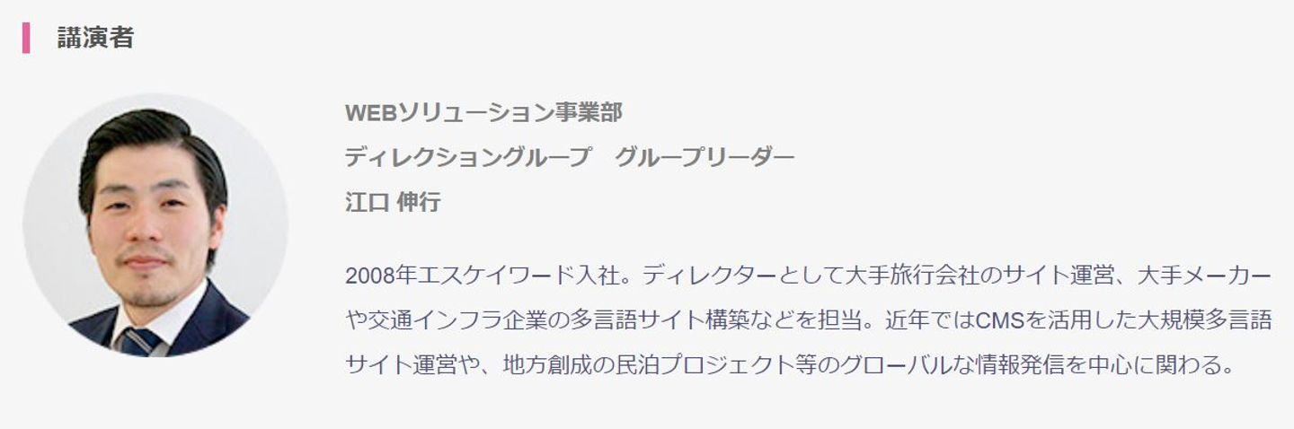 毎年多くの参加者で会場が満席となる人気のセミナーに、今回はエスケイワードの江口が登壇致します!