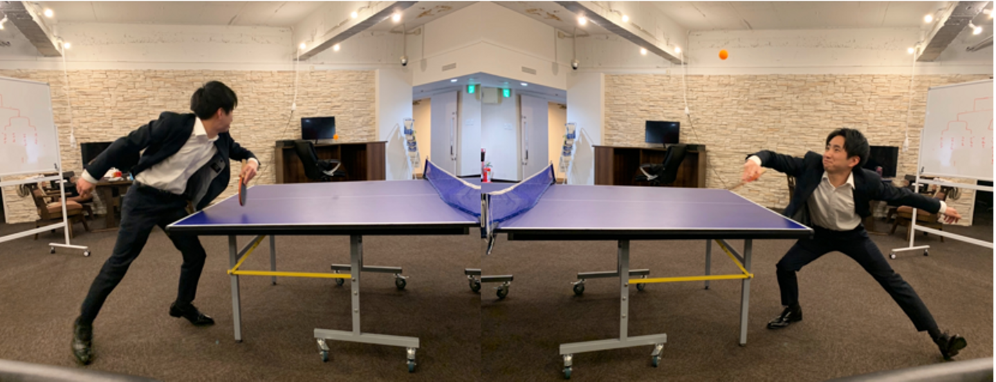 ▶営業担当たちで卓球対決。