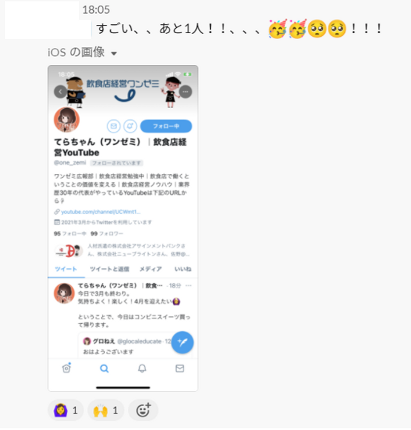 ちょうど1週間たった日の社内SNSは実況中継でした。