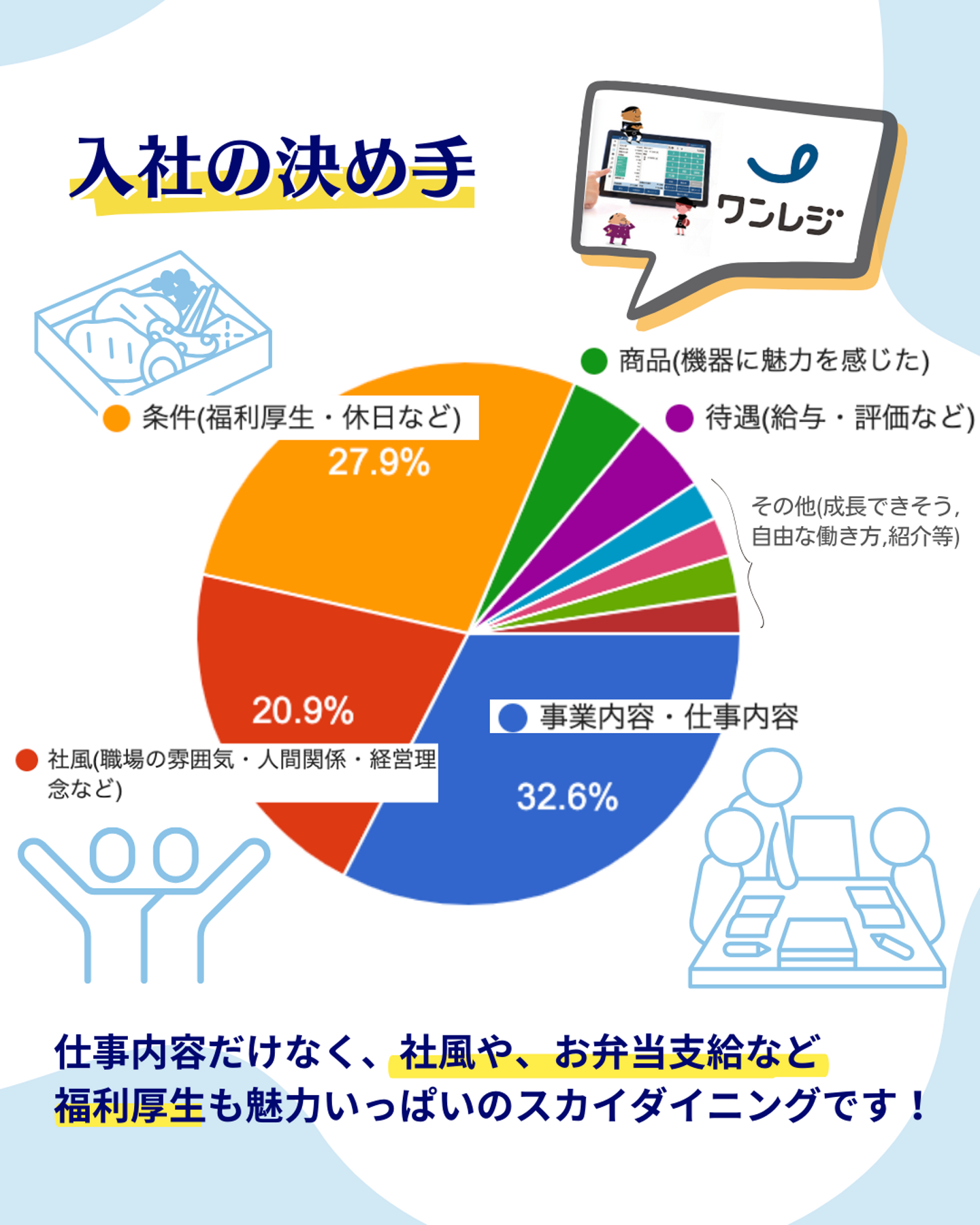 入社の決め手については、解答が大きく割れた結果になりました!