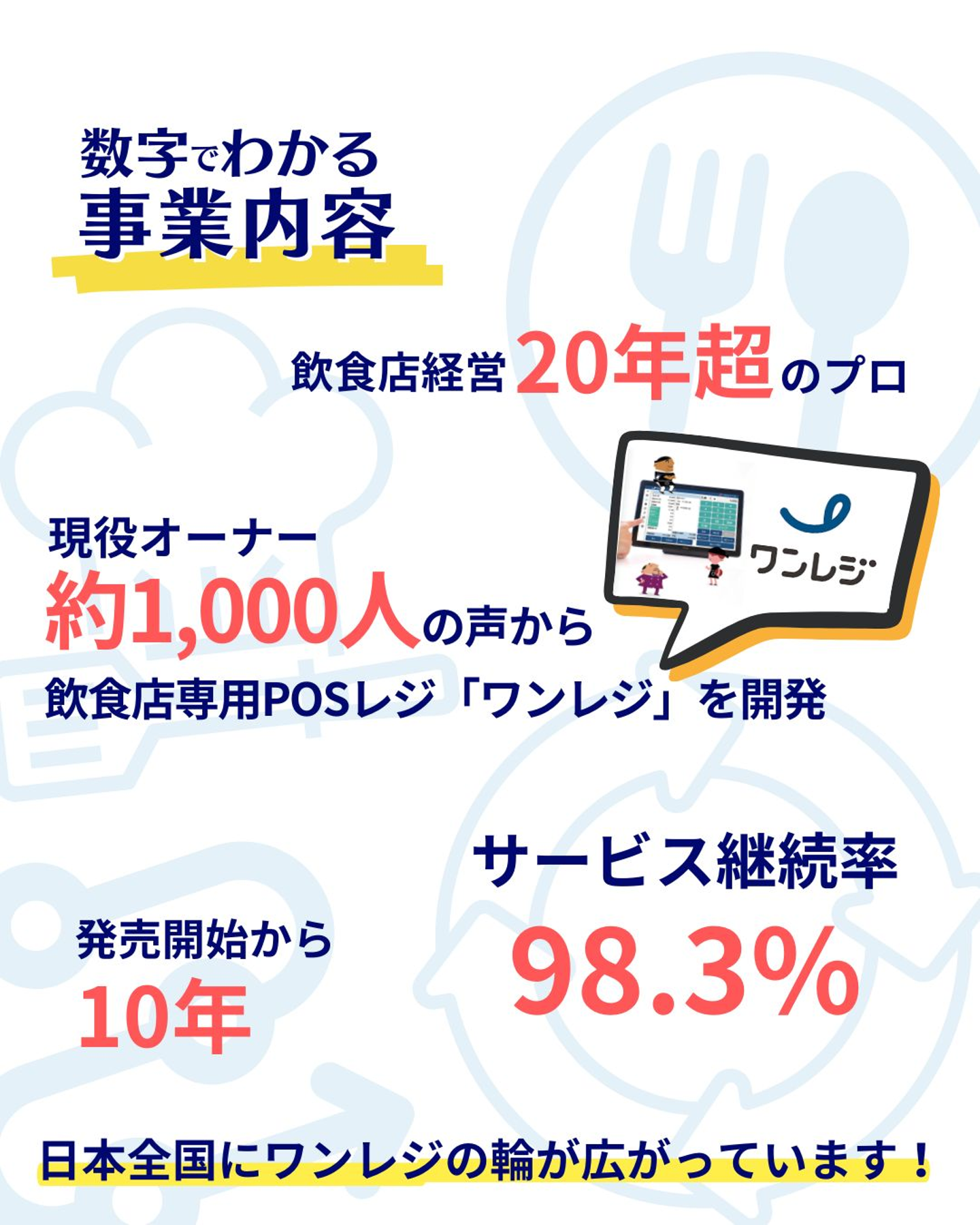 まずは、弊社での事業内容として、開発・販売している飲食店専用POSレジ「ワンレジ」に関するデータをまとめました。