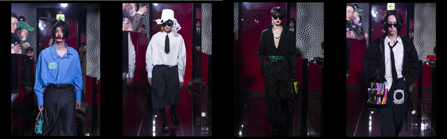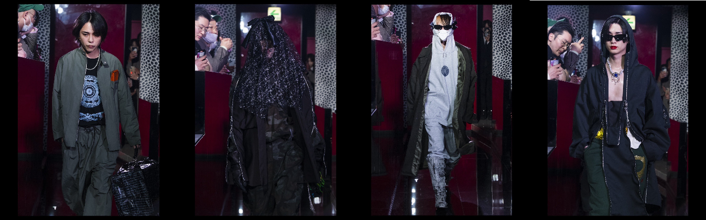 こちらの方々、みーんなSmappa!Groupのホストです。今回のコレクションは「ラグジュアリーグッズ」と呼ばれるブランド品を多く消費している「ホスト」と「ブランド」が組み合わさってショーをやったらどうなるか?という実験をやってみたいという、デザイナー川西遼平氏のアイデアが起点となっていて、