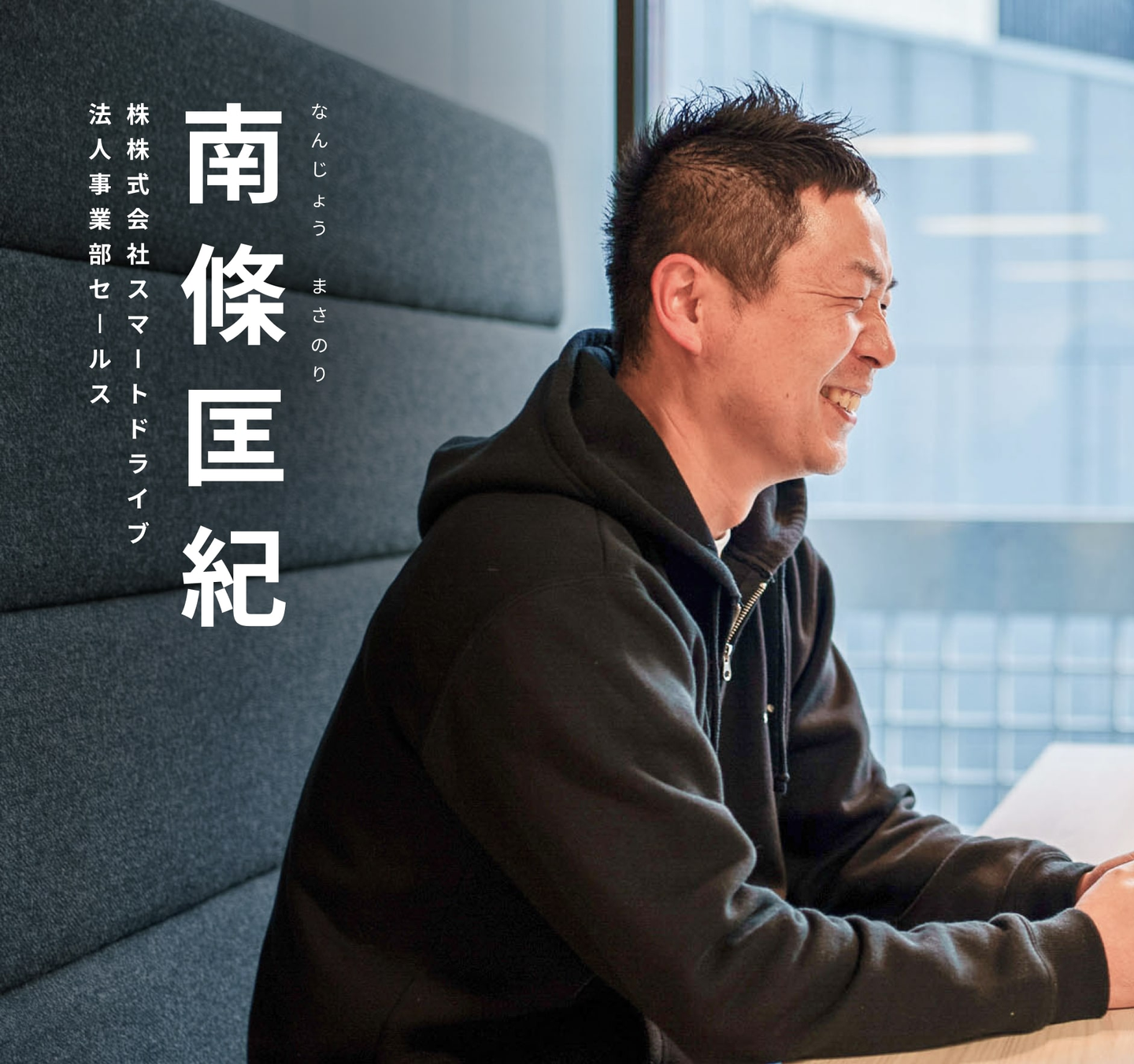 営業をはじめて経験したのは大学3年生のとき。大変ながらもやりがいを見出し、人材業界で10年以上も営業としての経験を積み上げてきました。前職では、会社が成熟するフェーズに入ってきたため、「立ち上げ期のベンチャー企業で、営業として貢献したい」との思いでスマートドライブへジョインした南條(なんじょう)。今までの経歴から、スマートドライブの営業として苦労したこと、学んだことなど、笑いあり、涙あり(?)のインタビューをお届けします。