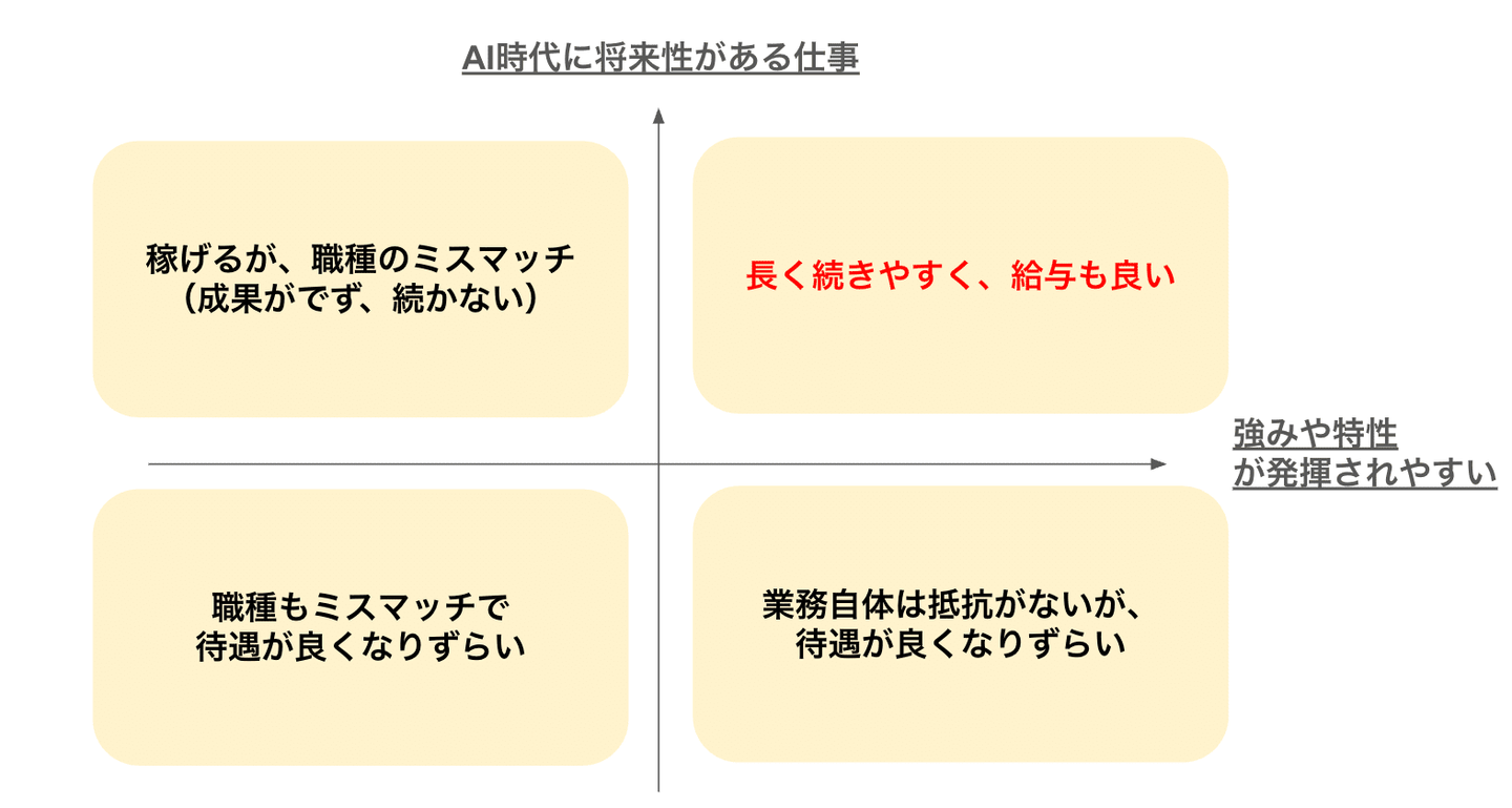 「強みや特性が発揮される」×「AI時代により必要とされる」仕事へ導く、を重視して転職サポートをしています。