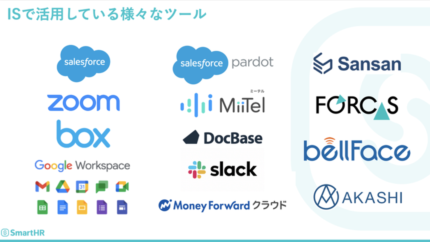 なお、ISはもちろんのことSmartHRでは多種多様なツールを駆使して生産性向上につながるビジネス環境を整えています。