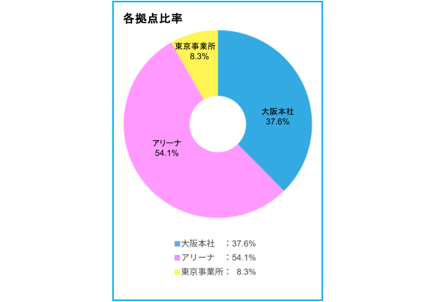 拠点比率は、今年開業したアリーナ勤務者(One Bright KOBE及びストークスに出向)が約54%となっています。