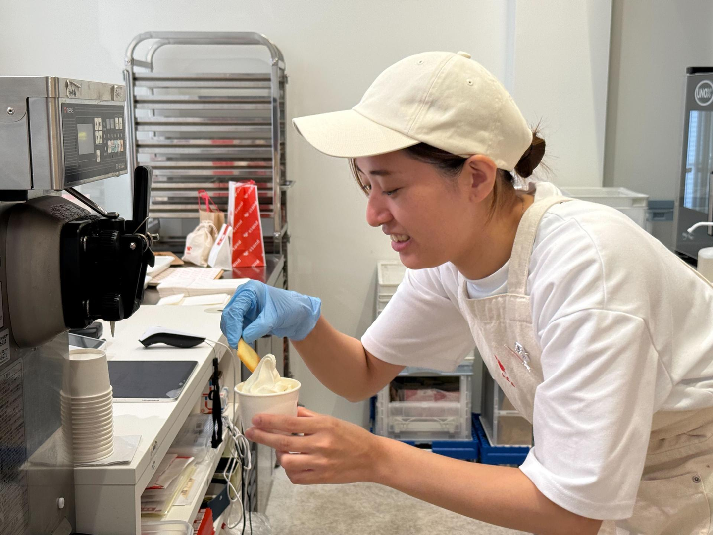 また研修をしている店舗である押上店では、季節のドリンク以外に無添加のソフトクリームを販売しており、人気の商品です🍦ミルクの味わい豊かな美味しいソフトクリームで、ご家族連れや甘いものが好きな方にも、素材本来の味がお好みの方にも美味しく召し上がっていただける看板商品です!