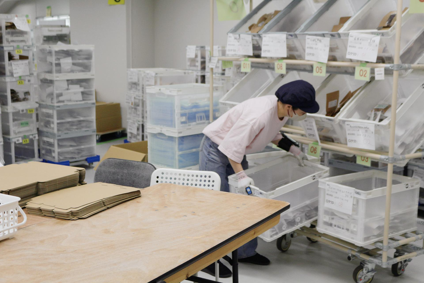お客様の注文ごとに、ピックアップして、箱詰めをしていきます。