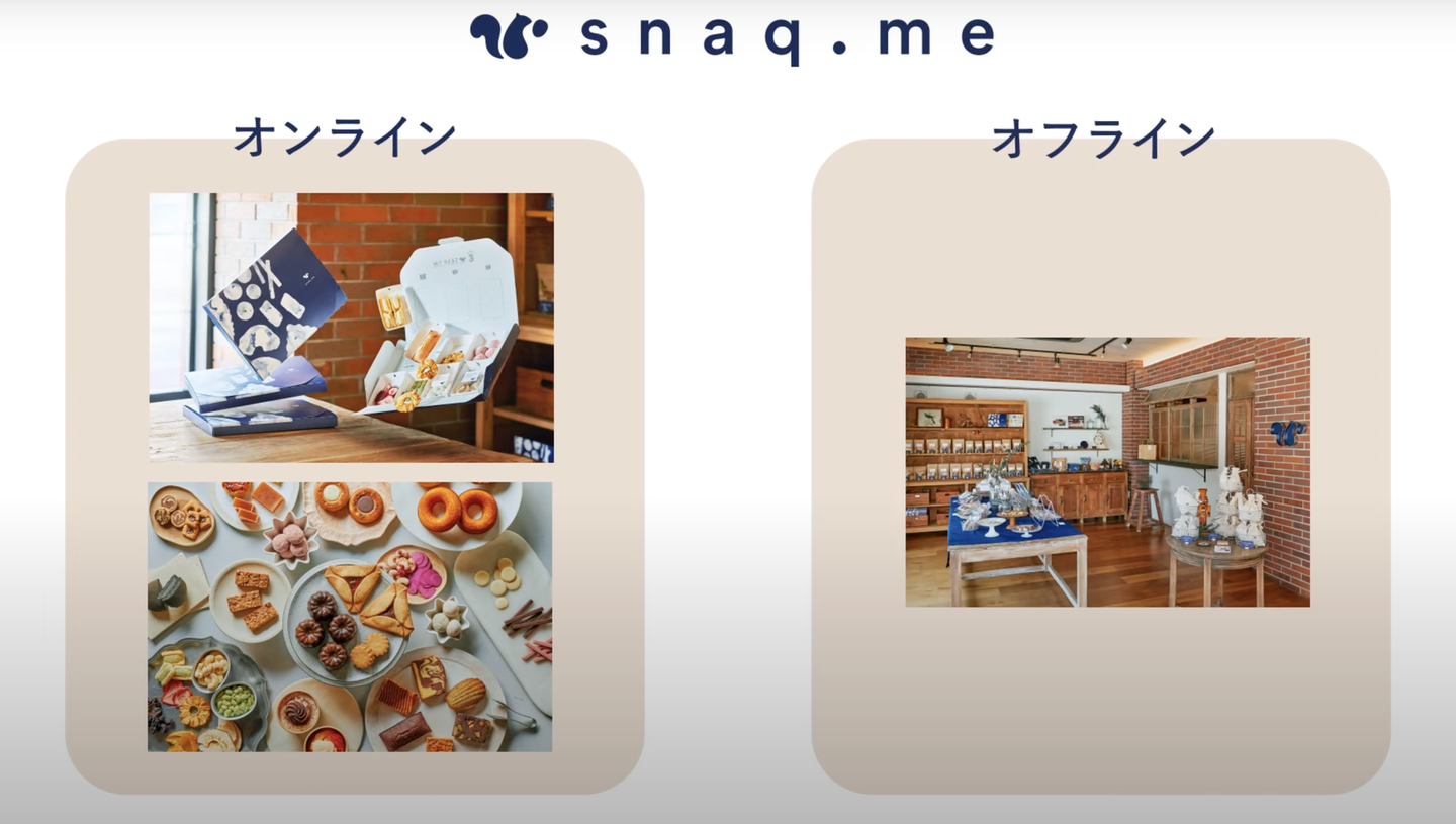 今回は、スナックミーの事業で、オンライン事業とオフライン事業の概要、オンライン事業の1つ「snaq.me」をお届けしました。