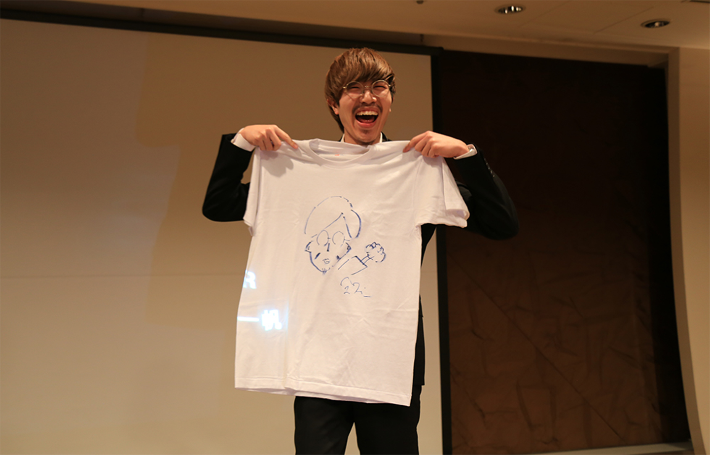 受賞者がコメントしている間に、リアルタイムでかいていきます。