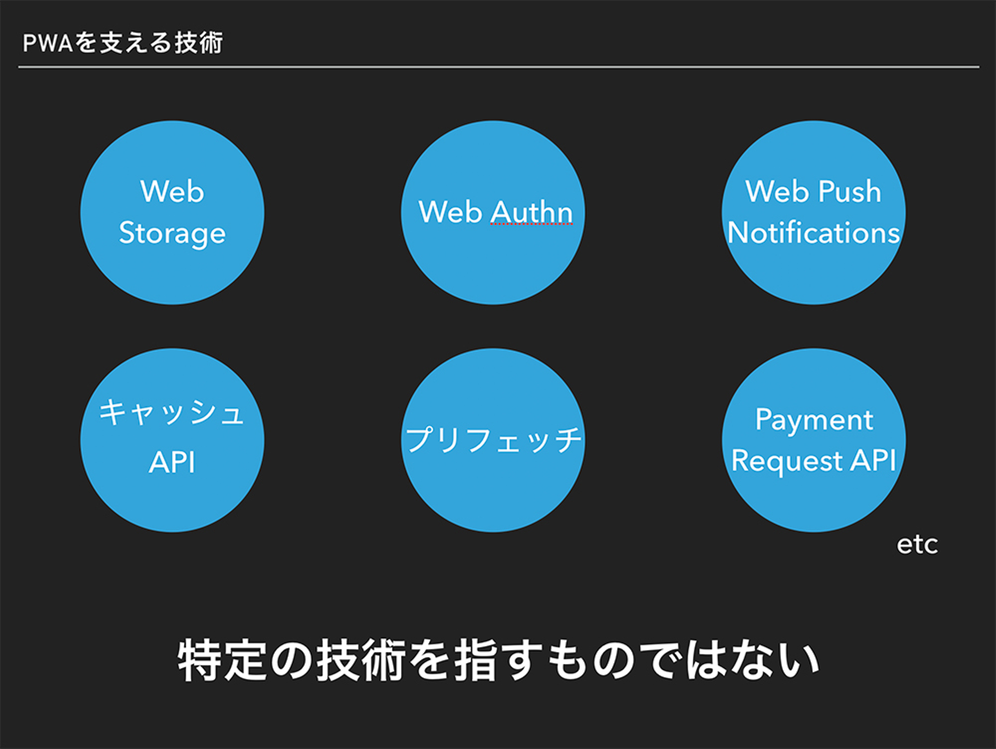 PWAとは、WEBの技術を使ってWEBサイトでネイティブアプリのような動作を実現する技術の総称です。