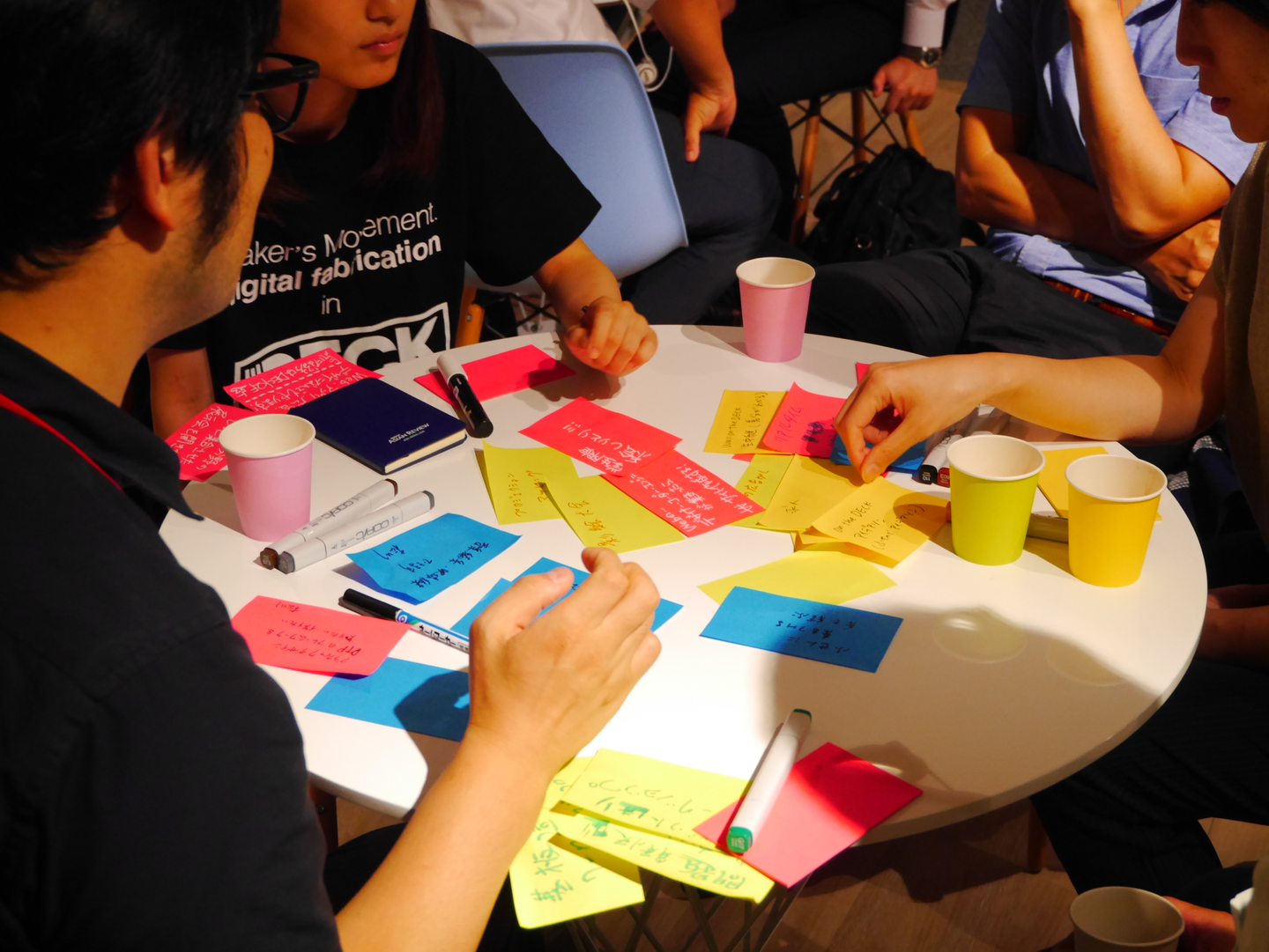 具体的には、みなさんの実現したいことをポストイットでグラスウォールに貼っていきます。