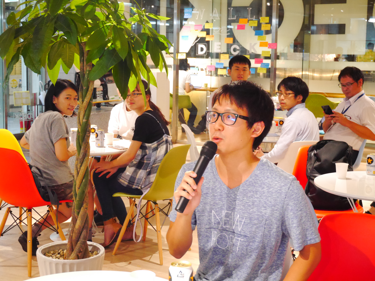 インフォバーン・井登さんがファシリテーターとして誘導のもと、ポストイットにみなさんの素敵なアイデアを書いていただき、グラスウォールへ貼っていきました。