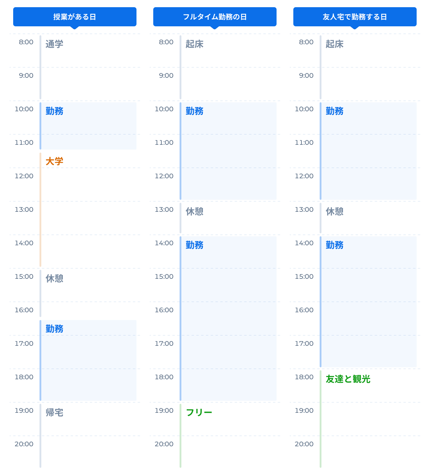 僕の場合、現在は授業がほとんどないのでフルタイムで働く日が多いのですが、授業の後に大学で勤務したり、気分転換として地方に住む友達の家で勤務したりもしました。