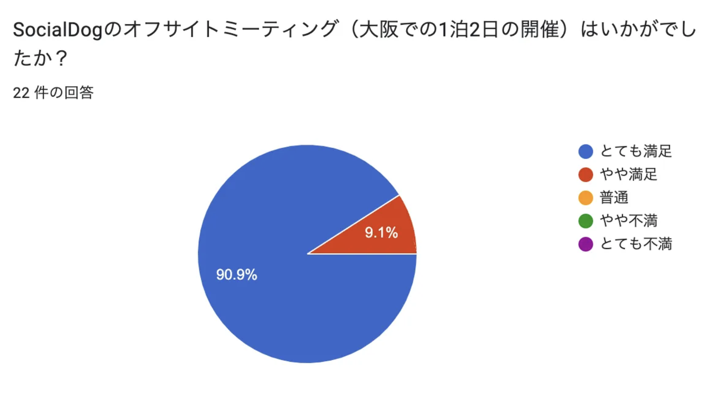 オフサイトミーティングの参加者アンケートでは、「とても満足」「やや満足」が100%という結果でした!