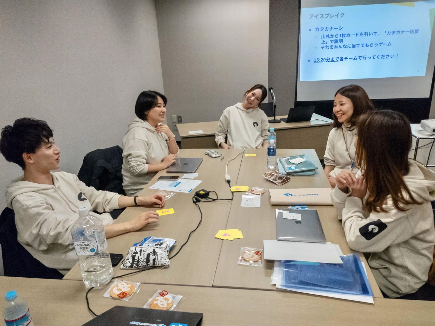 普段仕事しているチームメンバーと、アイスブレイクとして「カタカナーシ」をしました。このゲームは、カタカナ語を使わずにお題を説明するもので、自然と協力しながらコミュニケーションを取る必要があります。メンバー同士がリラックスして打ち解けやすくなりました。