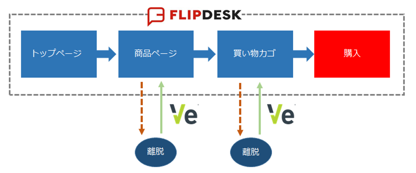 サイト内接客に強みを持つ「Flipdesk」と離脱防止に強みを持つ「VePlatform」が連携し、両ツールを活用することでより効果的にクライアントのコンバージョン改善を支援します。