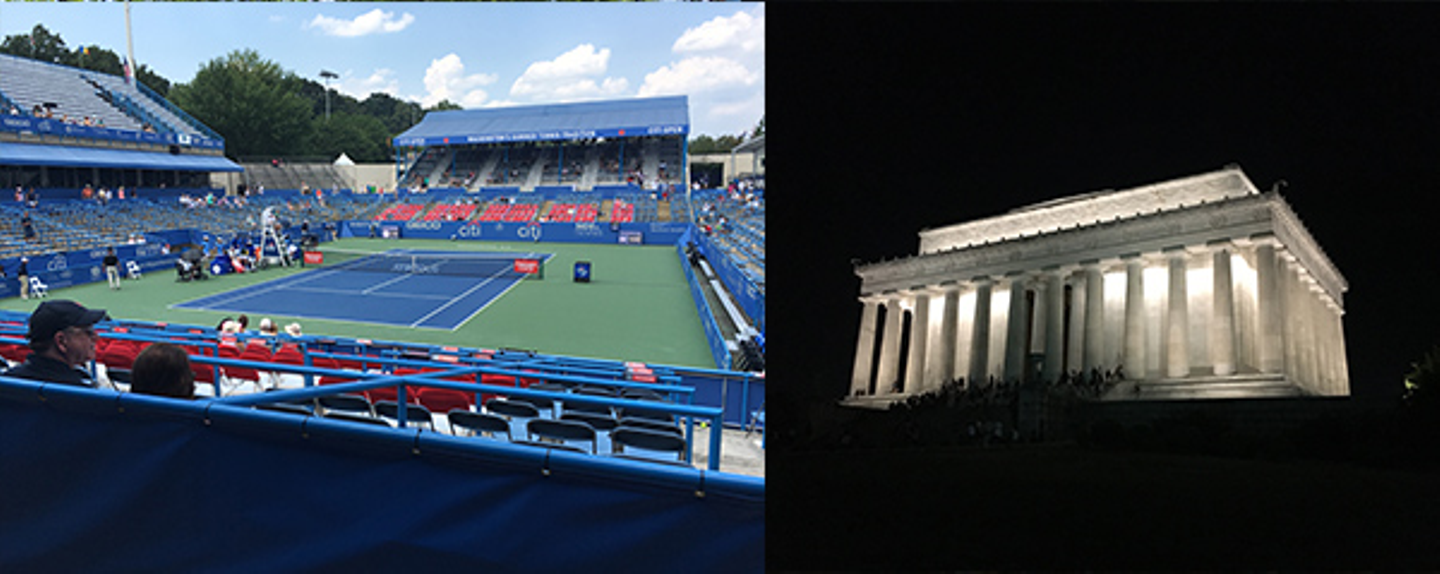 この日、プロテニス選手の試合シティ・オープンがちょうどワシントンD.C.で開かれており、お昼からチケットを取って観戦しに行く。事前情報では錦織選手が出場することになっていたが、直前でキャンセル。錦織選手を見られないのは残念だったが、私はテニス歴30年以上でありながらこれまで一度もプロの試合を見たことがなかったので、とても感動的な経験だった。疲れ気味の長男も間近でプロの練習風景を見て興奮。その夜はホワイトハウスやリンカーン記念館を見て回る。宿に戻って夜は引き続き12時ごろまで仕事を続ける。