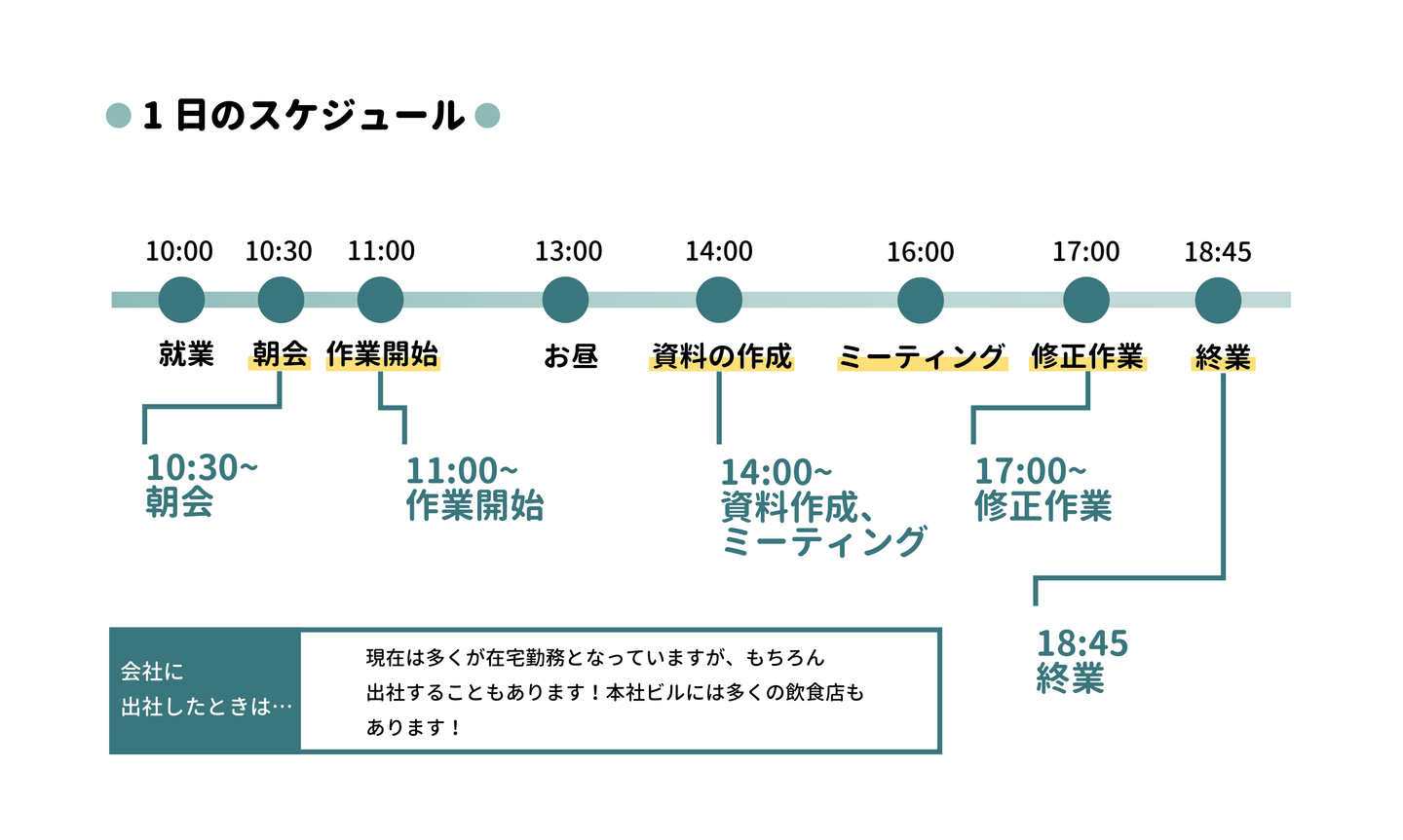 インターン生によって行う業務は変わるのですが、私の一日の例を紹介したいと思います。