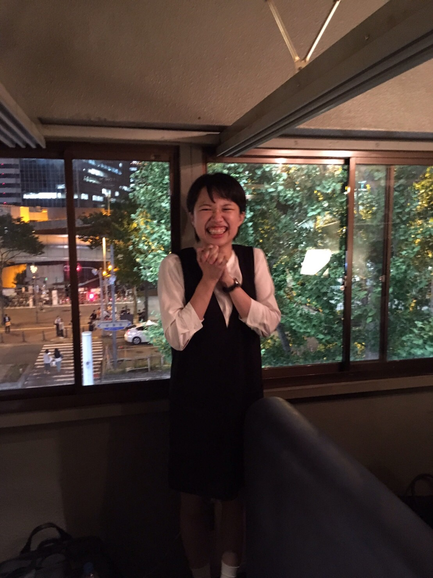 【内定者アルバイト時代の松本さん。今と変わらず笑顔がステキです。】