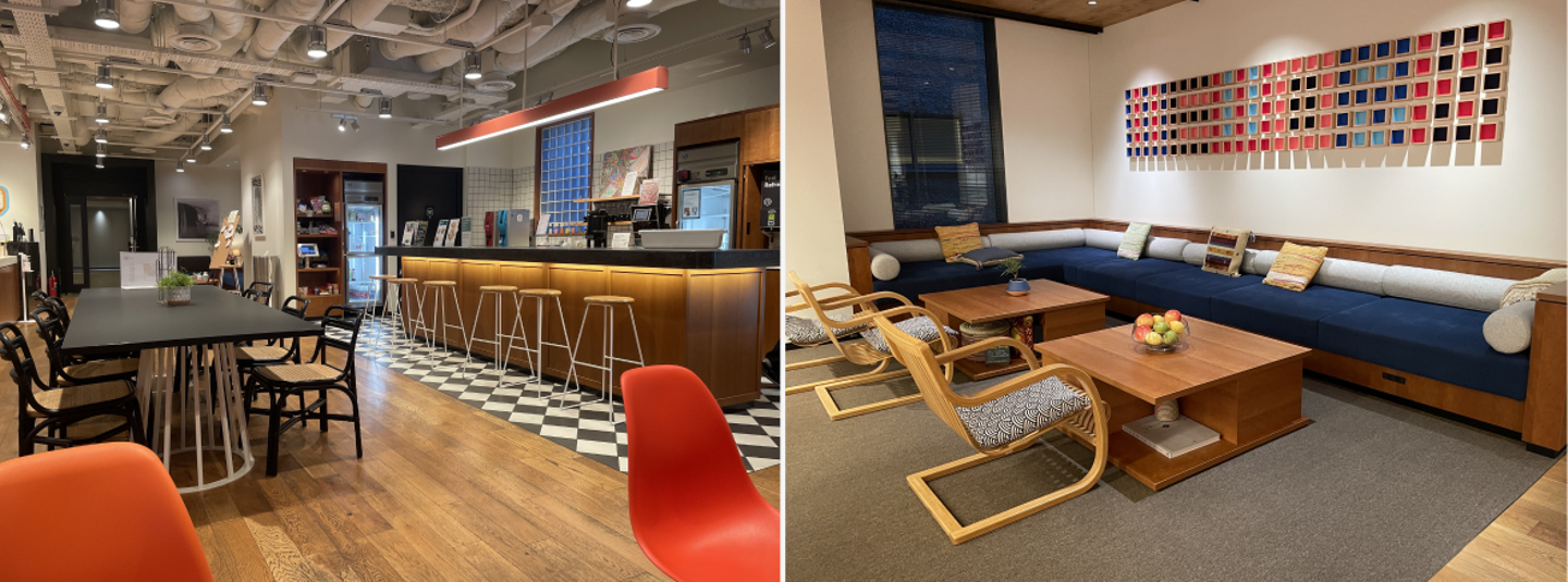 来客や会議の際はWeWorkの会議室を予約しますが、軽いmtgやブレスト、休憩についてはこの共有スペースにて行うこともあります。