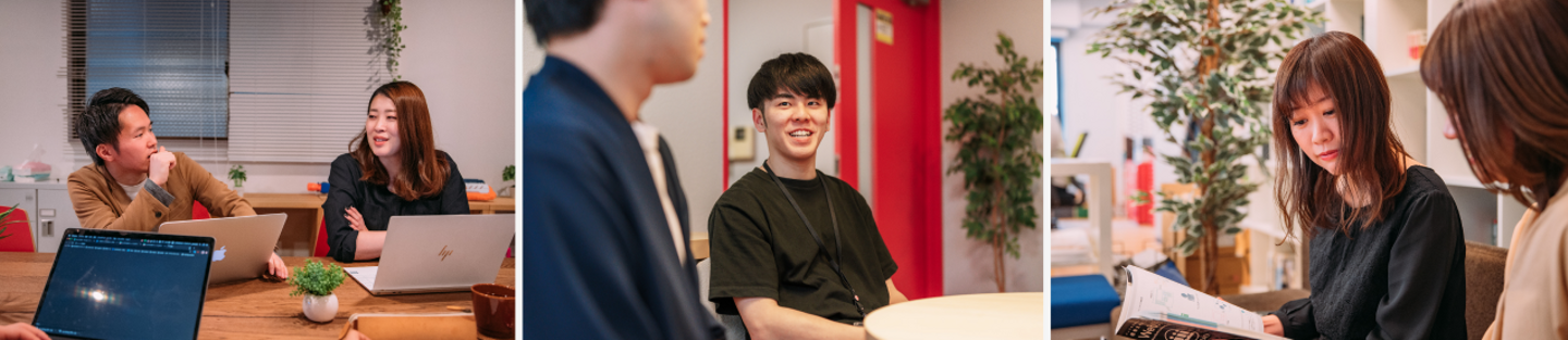特にWebディレクターはお客様との商談やチームメンバーとの対面コミュニケーションを大事にしているため、他の職能と比べ出社頻度が多い印象です(週1回、月1,2回など)。