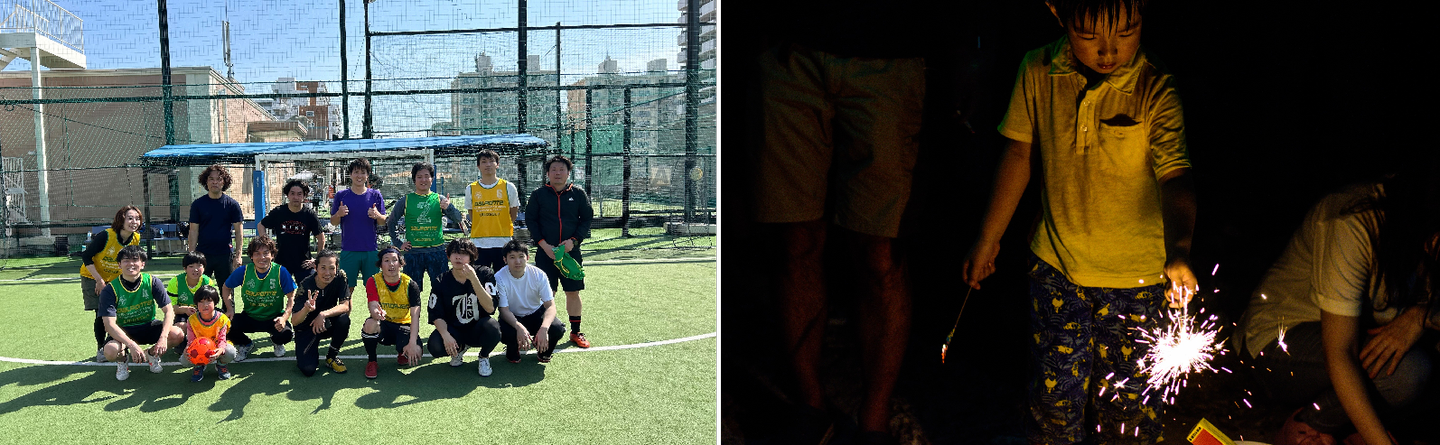 岡村:ソニックは家族が居るメンバーが多いので、家事・育児の時間とか周りからの理解もたくさんあって助かるよね~。あと、制度とは少し違うかもしれないんですけど、社員旅行とか部活に家族を連れていったことがあったかな。社員旅行はたしか湊が新卒1年目だった時だったよね。家族の同行とかも柔軟に対応してくれてすごく助かった。いい思い出です(笑)。