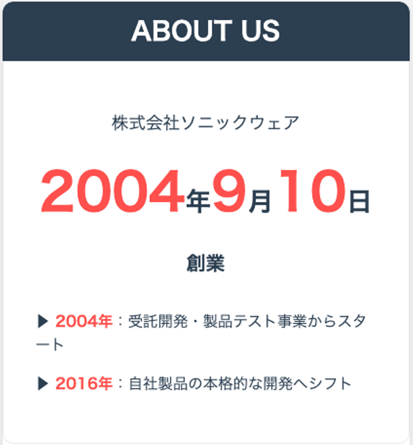 株式会社ソニックウェアは2004年9月10日に設立しました。